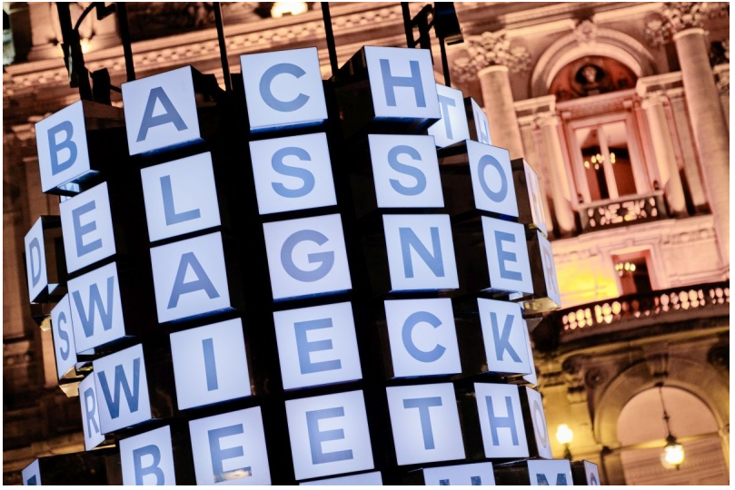 Krakauer Einwohner und Touristen, die von Donnerstag- bis Sonntagabend den Szczepański-Platz in der Altstadt von Krakau besuchen, können die musikalische Vielfalt Leipzigs emotional entdecken und erleben. Aus insgesamt 128 Buchstabenwürfeln besteht die 5 Meter hohe Skulptur, die die Namen bedeutender Leipziger Komponisten wie Johann Sebastian Bach, Felix Mendelssohn-Bartholdy, Robert Schumann und Richard Wagner zeigt. Bunte Sitzwürfel rings um die Installation laden tagsüber zum Verweilen und Informieren ein, und Kinder und Jugendliche sind eingeladen, auf selbst mitgebrachten Instrumenten vor Ort zu musizieren. Bei einem Gewinnspiel kann man zudem eine Reise in die Musikstadt Leipzig gewinnen. Am Abend wird die Installation durch wechselnde Licht-Farb-Spiele und eine interessante Klangcollage in Szene gesetzt.