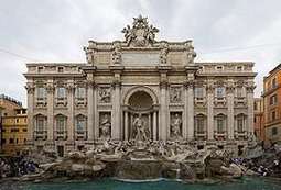 Fontana di Trevi jest chyba najsłynniejszą barokową fontanną Rzymu. Monumentalna, swym wyglądem przypominająca fasadę budynku, ma 20 m szerokości i 26 m wysokości. Została zbudowana w miejscu istniejącej fontanny z inicjatywy papieża Klemensa XII, który w 1732 r. ogłosił konkurs na nową fontannę. Osobiście wybrał projekt autorstwa Niccolo Salvi. Prace trwały od 1735 do 1776 r., a jej twórca nie dożył zakończenia budowy. Centralnymi postaciami fontanny są: bóg wód, chmur i deszczu - Neptun i dwa trytony - bóstwa morskie, zaczerpnięte z mitologii greckiej. Neptun znajduje się na rydwanie zaprzężonym w dwa konie, z których jeden jest spokojny prowadzony przez trytona z prawej strony, tryton z lewej strony natomiast stara się okiełznać niespokojnego konia. Mają one symbolizować dwa odmienne stany morza. W sąsiednich niszach znajdują się alegorie Zdrowia (po prawej) i Obfitości (po lewej). Ciekawa jest historia nazwy tej fontanny, związana z imieniem Trevia noszonym przez dziewicę (łac. virgo). To ona odkryła źródło wody i to dzięki niej mówi się o nich acqua virgo czyli dziewicze wody. Odkryte źródło zostało wykorzystane przy budowie akweduktu (zbudowanego jeszcze w 19 p.n.e.), który zasila zarówno Fontannę di Trevi, jak fontannę Barcaccia znajdująca się u podnóża Schodów Hiszpańskich. Zgodnie z przyjętym zwyczajem turyści wrzucają do fontanny drobne monety, by w ten sposób zapewnić sobie "powrót do Rzymu", a wyłowione pieniądze są przeznaczane przez władze miasta na utrzymanie zabytków.