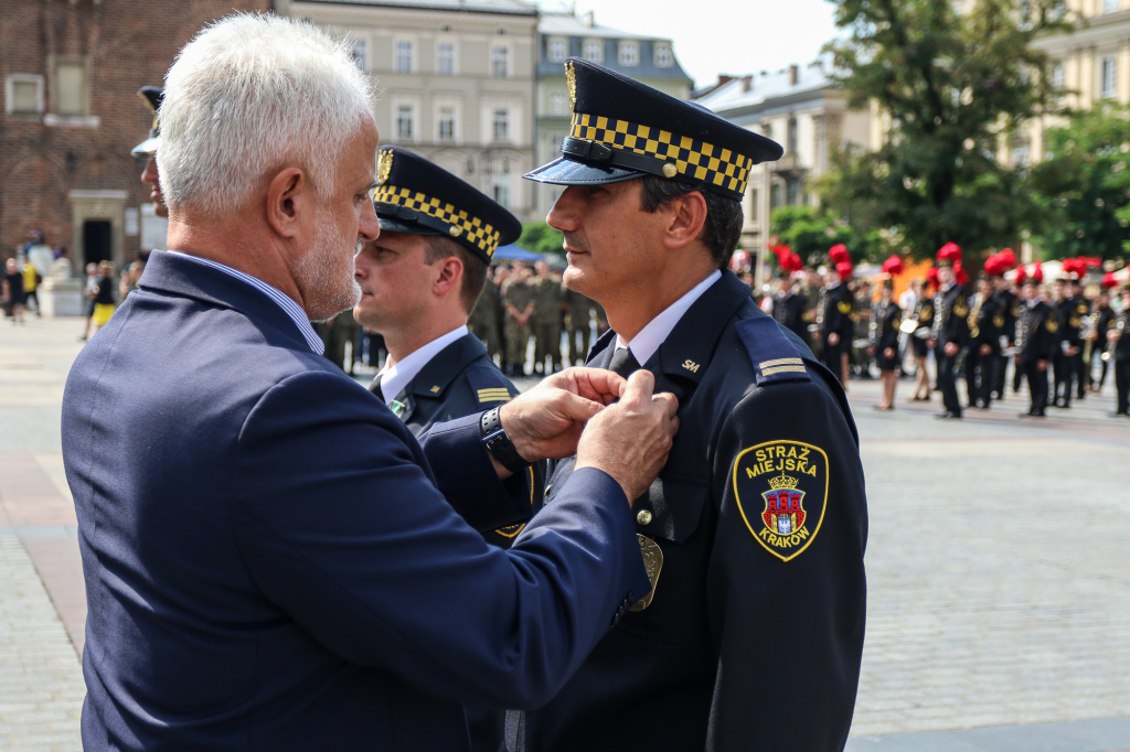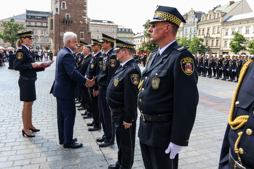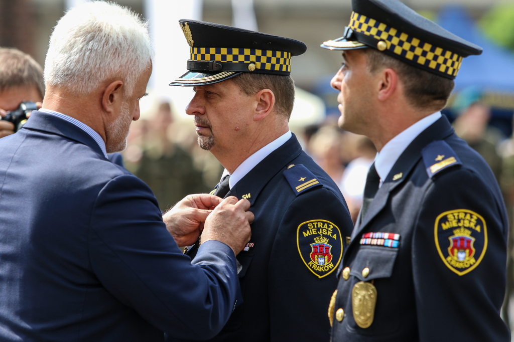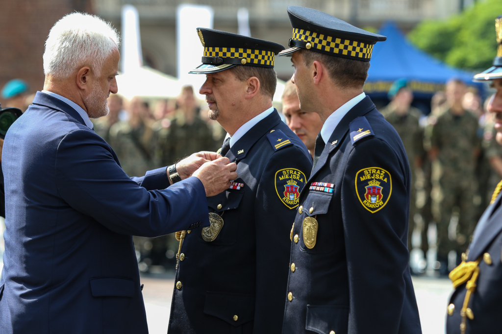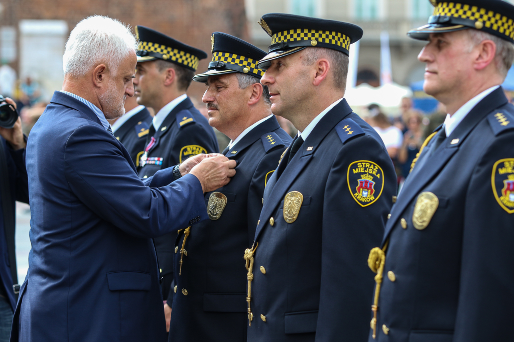 Podczas uroczystości, decyzją Prezydenta RP, zasłużonym funkcjonariuszom wręczono złote, srebrne i brązowe krzyże zasługi. Przyznano także medale za długoletnią służbę. Złotym krzyżem zostali odznaczeni: Adam Młot, komendant Straży Miejskiej Miasta Krakowa i Zbigniew Ulman, zastępca komendanta ds. operacyjnych.