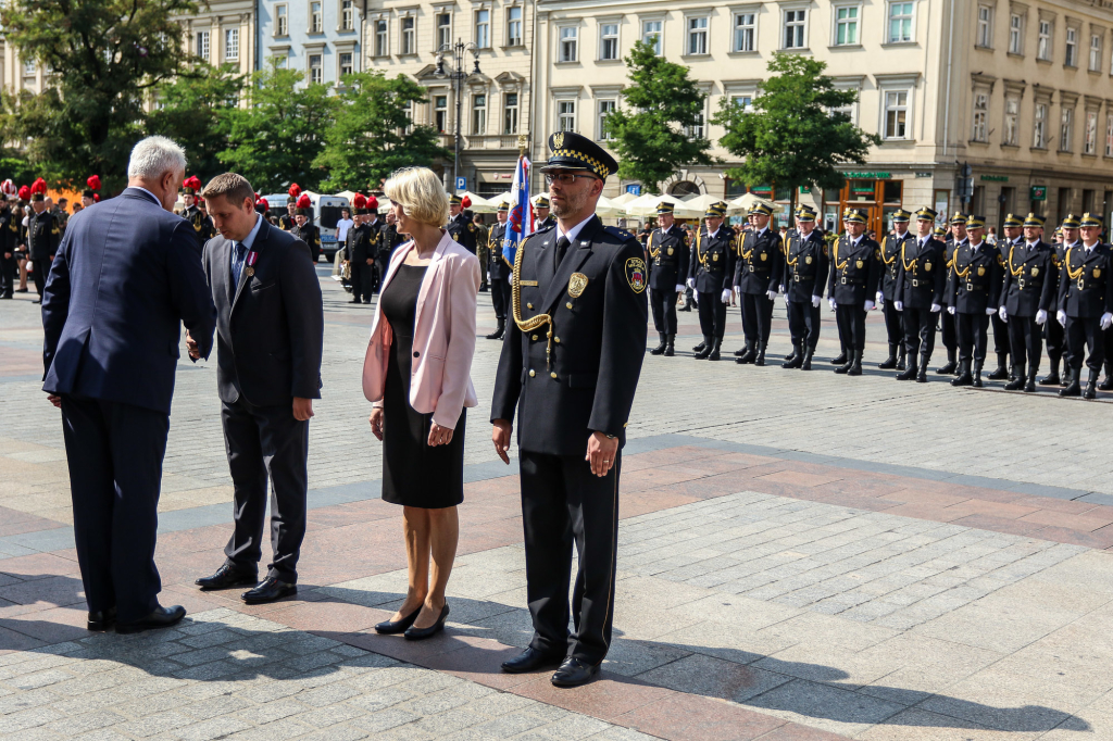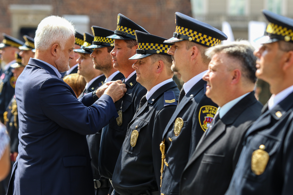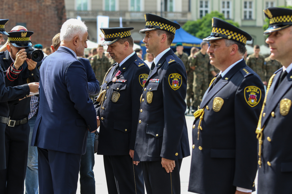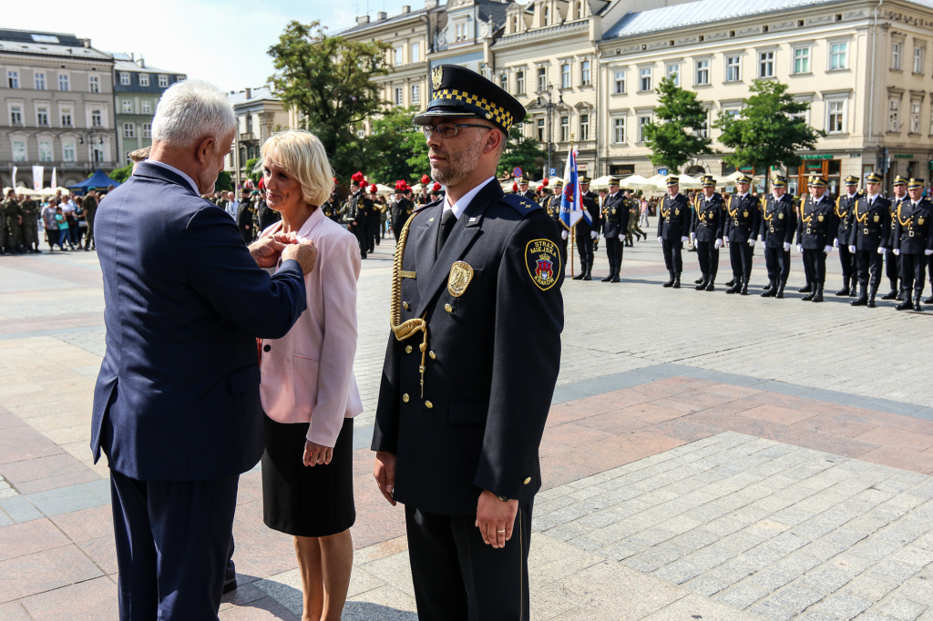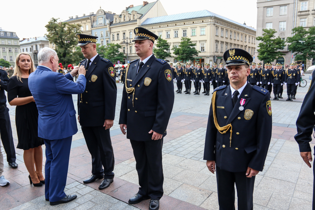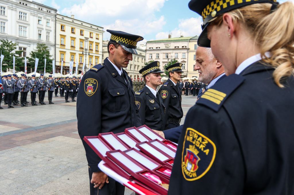 Podczas uroczystości, decyzją Prezydenta RP, zasłużonym funkcjonariuszom wręczono złote, srebrne i brązowe krzyże zasługi. Przyznano także medale za długoletnią służbę. Złotym krzyżem zostali odznaczeni: Adam Młot, komendant Straży Miejskiej Miasta Krakowa i Zbigniew Ulman, zastępca komendanta ds. operacyjnych.