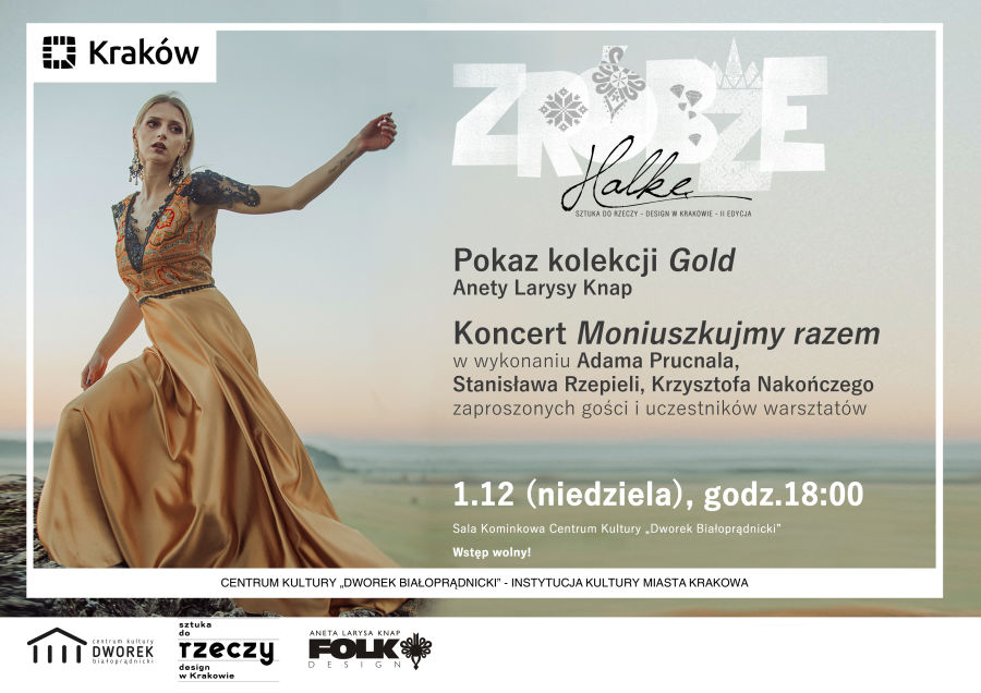 Koncert będzie połączony z pokazem elementów strojów wykonanych przez uczestników pozostałych działań oraz pokazem kolekcji Gold projektantki Anety Larysy Knap – producentki i organizatorki największego pokazu mody folk w kraju pt. „Polki Folki”, prekursorki połączenia tradycji z nowoczesnością w branży odzieżowej, która zajmuje się tworzeniem nowatorskiego stylu bazującego na tradycyjnych elementach góralskiego folkloru, podejmującej wysiłek scalenia w jedno codzienności i funkcjonalności z nieskazitelnym charakterem rejonu Podhala, projektującej dla własnej marki Folk Design.