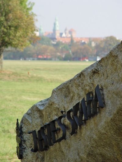 Ważący 26 ton kamień granitowy z okolic Morskiego Oka został tu umieszczony z inicjatywy Metropolity Krakowskiego, kard. Franciszka Macharskiego, w 19. rocznicę inauguracji pontyfikatu Jana Pawła II, w październiku 1997 r. Głaz upamiętnia spotkania Jana Pawła II z Archidiecezją Krakowską od czerwca 1979 r. Tutaj odbywała się większość krakowskich spotkań Ojca świętego Jana Pawła II z pielgrzymami podczas kolejnych wizyt w Polsce. Tutaj, kilka dni po śmierci Jana Pawła II, ok. 1 mln osób przyszło z krakowskiego Rynku Głównego w "Białym Marszu" (drugim w historii) i wzięło udział we mszy dziękczynnej za życie Ojca świętego Jana Pawła II.