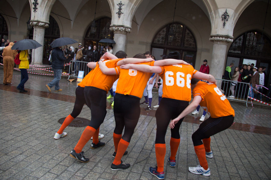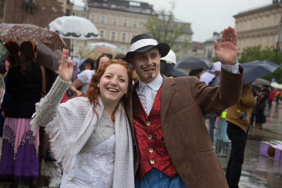 Tradycyjny korowód juwenaliowy wyruszył z ul. Reymonta na Rynek Główny, gdzie w południe Prezydent Jacek Majchrowski przekazał studentom klucze do bram miasta. Dzień zakończył koncert Juwenaliowa Fuzja Rapu (scena plenerowa przed Klubem Żaczek, godz. 19:00).