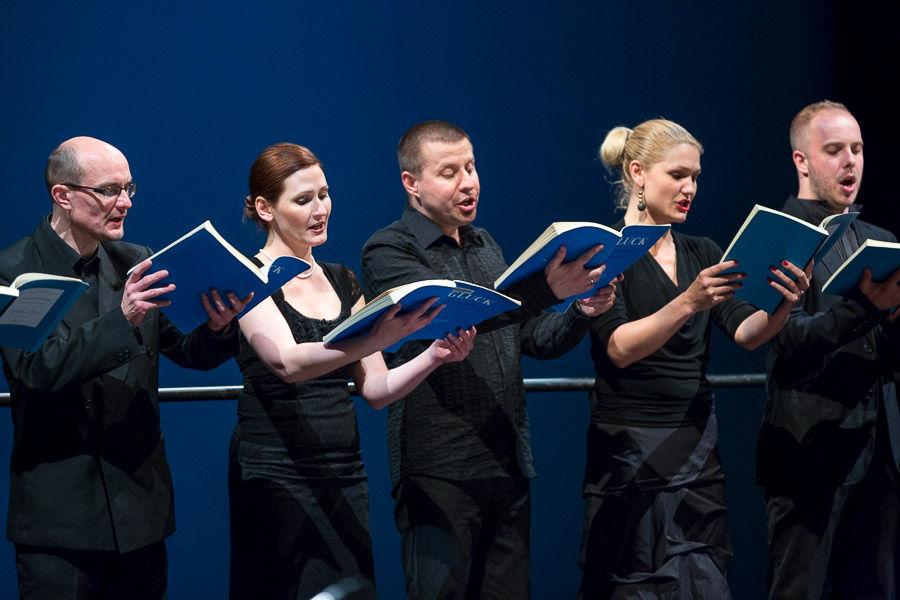 Dzieło rozpoczęła trzyczęściowa uwertura instrumentalna, w której kompozytor we wszystkich częściach zawarł materiał tematyczny z aktu III. Novum w zakresie instrumentacji było zastosowanie przez Glucka partii harfy. W akcję wprowadził nas Chór Spartan Non sdegnare, o bella Venere (Nie gardź piękna Wenus tymi kwiatami) - oto trojański książę Parys przybył do Sparty w poszukiwaniu Heleny, obiecanej mu przez boginię miłości. Delegacja trojańska zostaje przyjęta muzyką i tańcem. Z chórem pięknie korespondowała doskonale znana krakowskim melomanom sopranistka o nieskazitelnie czystym głosie - Jolanta Kowalska-Pawlikowska, którą mogliśmy podziwiać na Opera Rara w 2011 roku w Alcinie Handla, kiedy to wystąpiła wraz z Les Musiciens du Louvre-Grenoble pod dyrekcją Marka Minkowskiego.