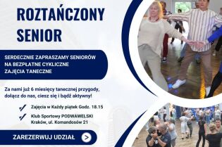 „Roztańczony senior” to wyjątkowa inicjatywa skierowana do seniorów Gminy Miejskiej Kraków, która łączy pasję do tańca, aktywność fizyczną oraz integrację społeczną. Bezpłatne zajęcia odbywają się w każdy piątek o godz. 18.15 w Klubie Sportowym Podwawelski przy ul. Komandosów 21.