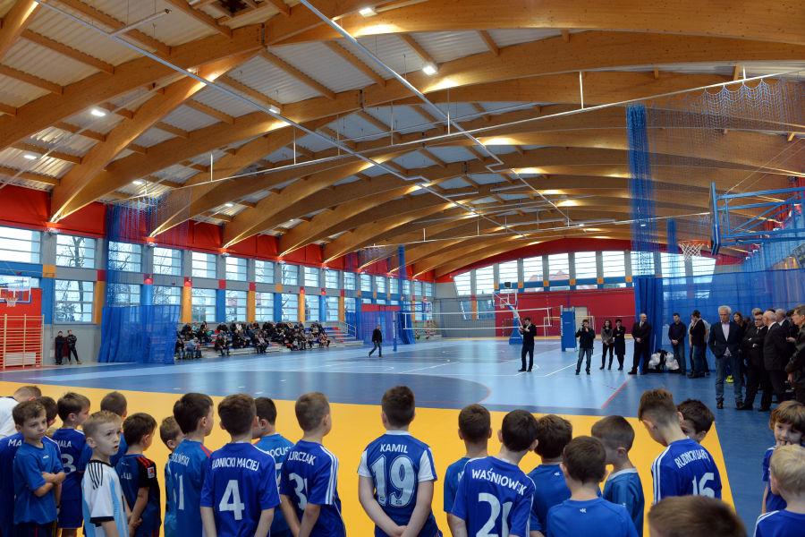 Prace budowlane zostały zakończone 27 listopada, potem hala została wyposażona w urządzenia. Zakres prowadzonych od listopada 2013 roku prac obejmował budowę hali oraz rozbudowę zaplecza, hallu wejściowego/recepcji, wykonanie dodatkowych pomieszczeń szatni i magazynów na sprzęt sportowy a także dojść i dojazdów, w tym budowę drogi pożarowej oraz parkingu i ogrodzenia.