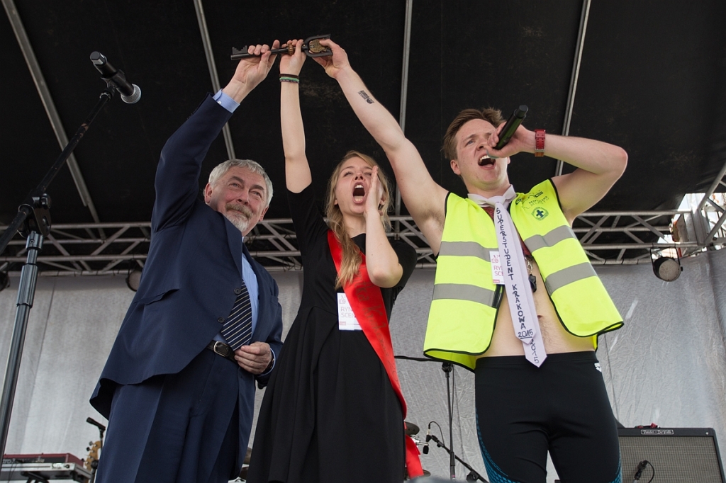 W piątek (8 maja) przez Kraków przeszedł kolorowy korowód juwenaliowy! Jak co roku, na zakończenie przemarszu Prezydent Miasta Krakowa Jacek Majchrowski symbolicznie przekazał studentom władzę w Krakowie. Uroczystość wręczenia kluczy do bram Miasta rozpoczęła się punktualnie o godz. 12.00 na Rynku Głównym. Klucze odbierze Magdalena Kędra, wybrana przez studentów Najmilszą Studentką Krakowa oraz Superstudent Krakowa Michał Barycki.