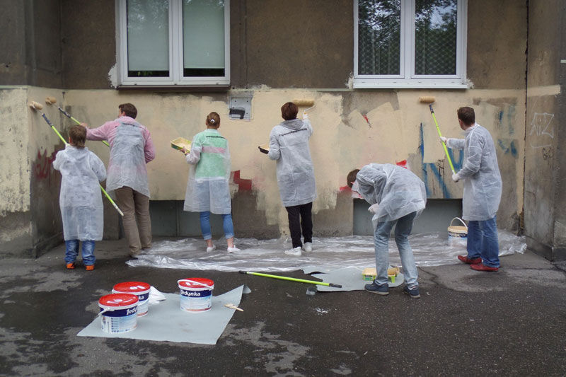 Na wszystkich chętnych czekały wałki, pędzle, farby oraz stroje ochronne. W ciągu zaledwie trzech godzin Pogromcy Bazgrołów wspólnie z krakowianami odnowili elewacje dwóch budynków. Kilka warstw farby zakryło wulgarne i pseudokibicowskie bohomazy. Co ciekawe, w ich miejsce pojawił się napis „NIE BĄDŹ ŁOŚ I ZGŁOŚ 986 i 997". W ten sposób organizatorzy akcji chcą przekonywać mieszkańców, by reagowali na wszelkie przypadki niszczenia elewacji.