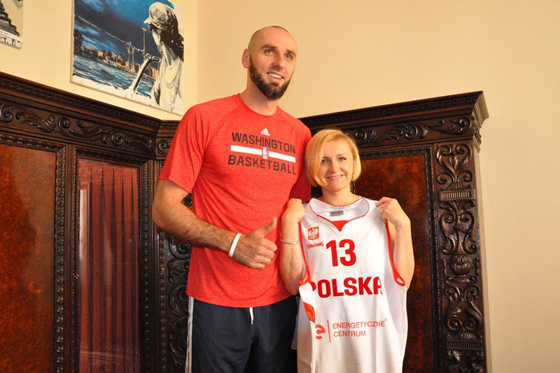 Dziś jeszcze nie lawirował z piłką i nie rzucał za trzy punkty – te emocje dopiero przed nami – ale i tak wzbudził wielkie zainteresowanie wśród krakowian przechodzących przez plac Wszystkich Świętych. Marcin Gortat, najlepszy polski koszykarz, spotkał się dziś w Magistracie z Katarzyną Cięciak, Zastępcą Prezydenta Krakowa ds. Edukacji i Sportu. Wczoraj (16 lipca) sportowiec wziął udział w konferencji prasowej, podczas której opowiedział o wydarzeniach, które zaplanował w ramach Finału Marcin Gortat Camp 2015 w TAURON Arenie Kraków.