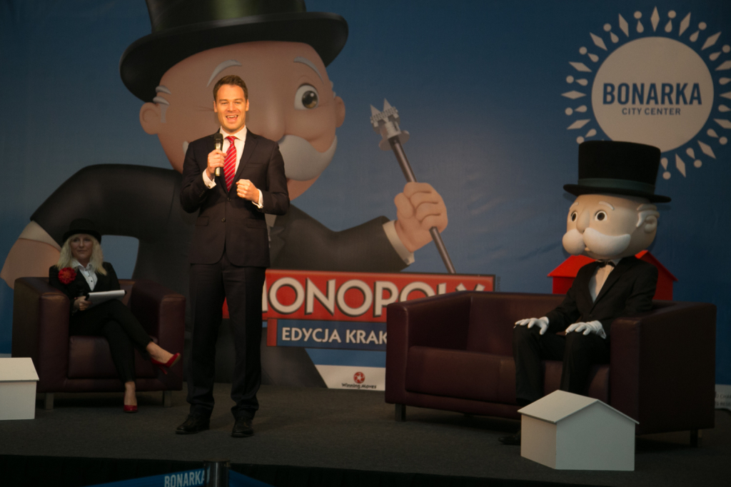 W sobotę, 7 listopada br., w samo południe w Bonarka City Center odsłonięto planszę krakowskiej edycji Monopoly. Po oficjalnej prezentacji nastąpił prawdziwy boom wśród obecnych na inauguracji dzieciaków, które jako pierwsze chciały zagrać na olbrzymiej planszy i bawić się wspólnie z maskotką gry - kochającym dzieci Panem Monopoly! Przybył on do Krakowa pociągiem Pendolino relacji Warszawa-Kraków, po niedawnej premierze gry Monopoly, dotyczącej warszawskiego dwudziestolecia międzywojennego.