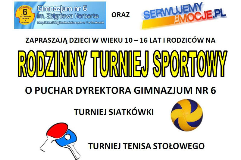 Na turniej zapraszają Gimnazjum nr 6 oraz portal SerwujemyEmocje. Na wszystkich uczestników czekają poczęstunek, upominki oraz pamiątkowe nagrody. Wpisowe – 5 zł.