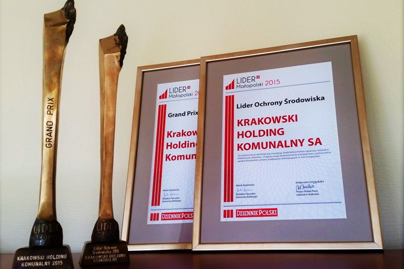 Krakowski Holding Komunalny S.A. został uhonorowany aż dwiema prestiżowymi nagrodami - Lidera Ochrony Środowiska oraz Grand Prix, przyznawanymi w plebiscycie Lidera Małopolski, zorganizowanym przez „Dziennik Polski”.