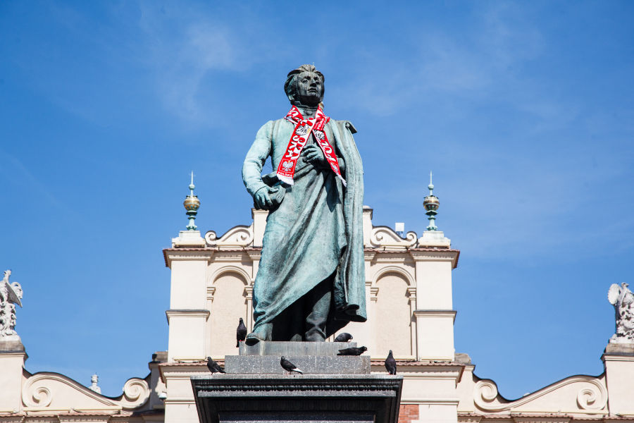 Dziś o godz. 21 na stadionie Veledrome w Marsylii reprezentacja Polski zmierzy się z Portugalią w ćwierćfinale Euro 2016. W Krakowie do kibicowania przygotowują się wszyscy a szalik w biało-czerwonych barwach założył sam Adam Mickiewicz.