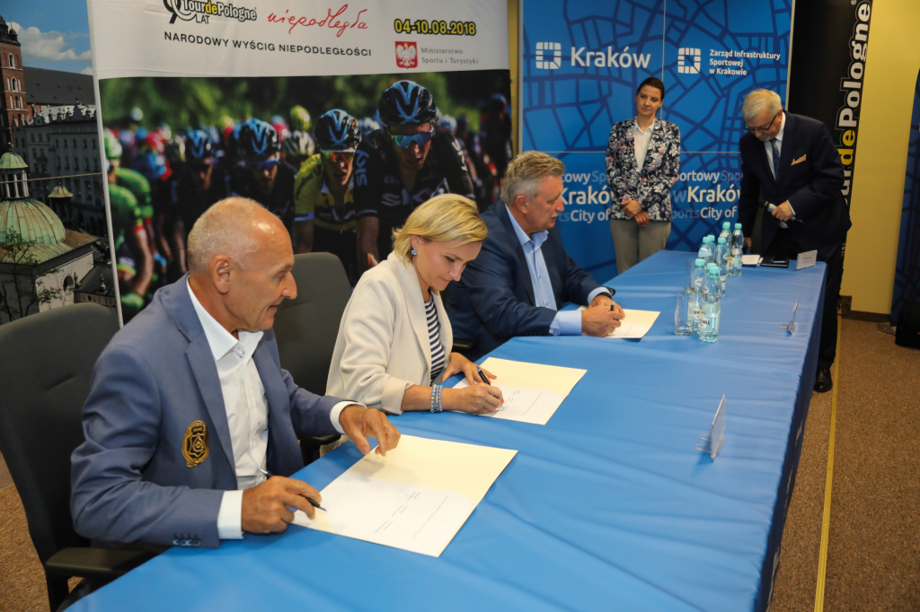 W sobotę, 4 sierpnia rozpocznie się w Krakowie 75. Tour de Pologne. Dzień wcześniej jego uczestnicy, czołowi kolarze świata, wezmą udział w uroczystej prezentacji na Rynku Głównym. Gmina Miejska Kraków i organizująca od 25 lat ten wyścig firma Lang Team chcą kontynuować współpracę, dlatego w środę, 13 czerwca, Zastępca Prezydenta Miasta Krakowa ds. Edukacji i Sportu Katarzyna Król, Dyrektor Zarządu Infrastruktury Sportowej w Krakowie Krzysztof Kowal oraz Dyrektor Generalny Lang Team i Tour de Pologne Czesław Lang podpisali list intencyjny dotyczący wspólnych działań w latach 2019-2023.