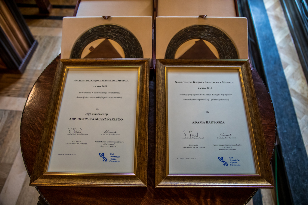 W piątek, 1 marca w sali obrad Rady Miasta Krakowa została wręczona Nagroda im. księdza Stanisława Musiała, przyznawana osobom zasłużonym dla dialogu chrześcijańsko- i polsko-żydowskiego. Za twórczość nagrodzony został teolog, biblista, prymas-senior abp Henryk Muszyński (w jego imieniu nagrodę odebrał kard. Stanisław Dziwisz), a za działalność społeczną – Adam Bartosz, muzealnik, prezes Komitetu Opieki nad Zabytkami Kultury Żydowskiej w Tarnowie. W wydarzeniu wziął udział prezydent Krakowa Jacek Majchrowski.