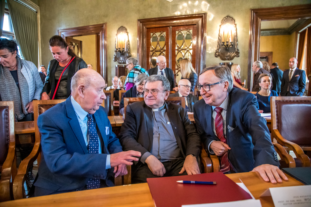 - Adam Bartosz w ciągu swojego życia zrobił i dalej robi wiele dla poprawy relacji Polaków i Żydów ucząc tolerancji i wzajemnego poszanowania – podkreślił rektor UJ prof. dr hab. med. Wojciech Nowak.