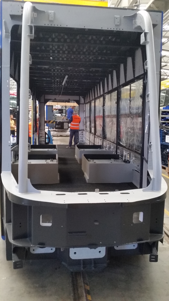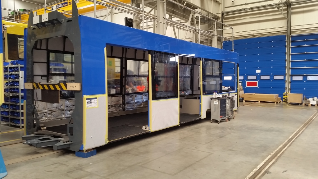 Na zaawansowanym etapie są prace przy pierwszym z 50 nowych tramwajów dla Krakowa. W polakierowanych pudłach kolejnych wagonów są obecnie montowane szyby, podłoga oraz inne elementy wyposażenia wnętrza. Zakupione zostały także podzespoły potrzebne do budowy pojazdów. To oznacza, że zamówienie jest realizowane zgodnie z planem, a pierwszy nowy tramwaj zostanie dostarczony do Krakowa już w styczniu 2020 roku.