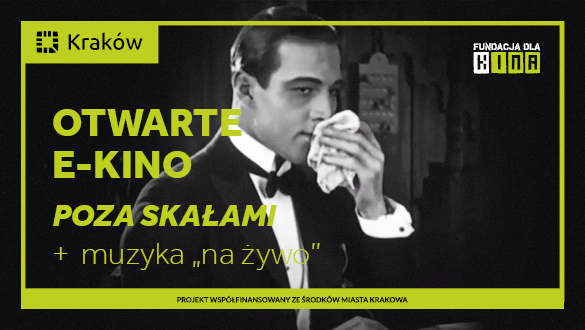 24 listopada Kino pod Baranami i Fundacja dla Kina zapraszają do udziału w bezpłatnym, wirtualnym seansie filmu niemego „Poza skałami”. Pokaz, będący częścią cyklu „Otwarte e-kino”, odbędzie się w przestrzeni wirtualnej, a a towarzyszyć mu będzie muzyka przygotowana przez kwartet w składzie: Maciej Trifonidis, Joachim Mencel, Stanisław Jan Klemens Słowiński i Marek “Smok” Rajss. Dostęp do wydarzenia - nieodpłatny!