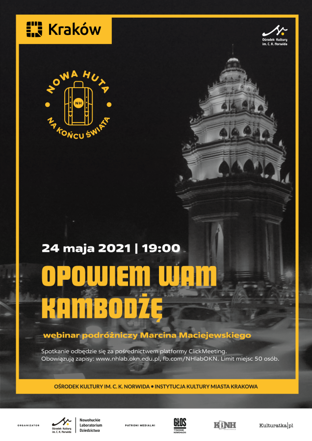 Ośrodek Kultury im. C.K. Norwida zaprasza webinar podróżniczy Marcina Maciejewskiego. „Opowiem Wam Kambodżę” to historia osoby pchniętej w tę kulturę poprzez ciekawość, pracę oraz odważną decyzję. Spotkanie w formule online odbędzie się dziś, 24 maja. Początek o godz. 19.00.