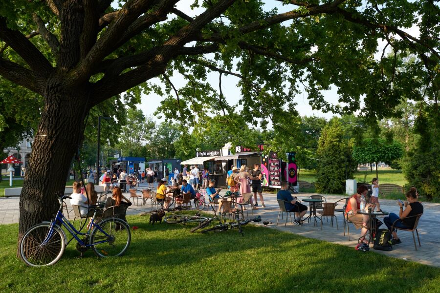 Telewizja śniadaniowa w terenie to magia ekranu i czar rzeczywistości. Pamiątką po każdym spotkaniu – poza wspomnieniami i koncertem – będzie stworzenie kolejnej potrawy po nowohucku! Kuchnia intencyjna z przymrużeniem oka, ale zjadliwa i tworząca folklor kulinarny dzielnicy. Integracja z „żarciowozami” to idealna okazja, żeby wprowadzać własne nazewnictwo i receptury na desery, hamburgery, surówki i inne sformowane w ogniu huty potrawy.
