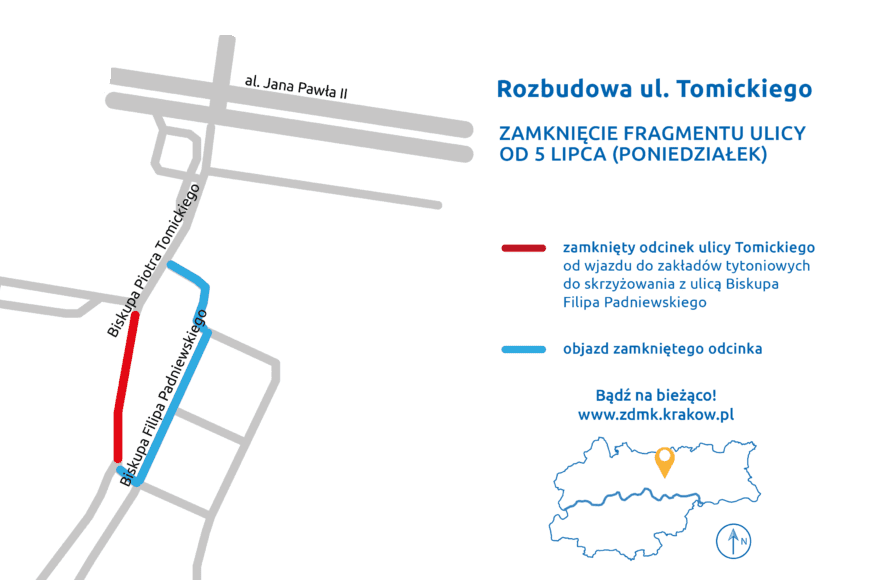 5 lipca rozpoczęła się rozbudowa fragmentu ul. Tomickiego. W związku z tym zostały wprowadzone zmiany w organizacji ruchu.
