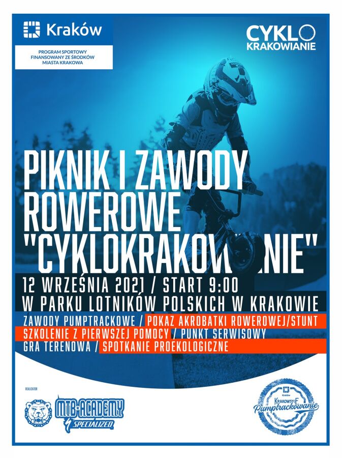 Zapraszamy dziś, 12 września na najważniejszą w Krakowie imprezę dla entuzjastów jazdy rowerem po torze typu pumptrack. Piknik rowerowy z wieloma atrakcjami, skierowany jest do rodzin z dziećmi i odbędzie się w Parku Lotników Polskich.