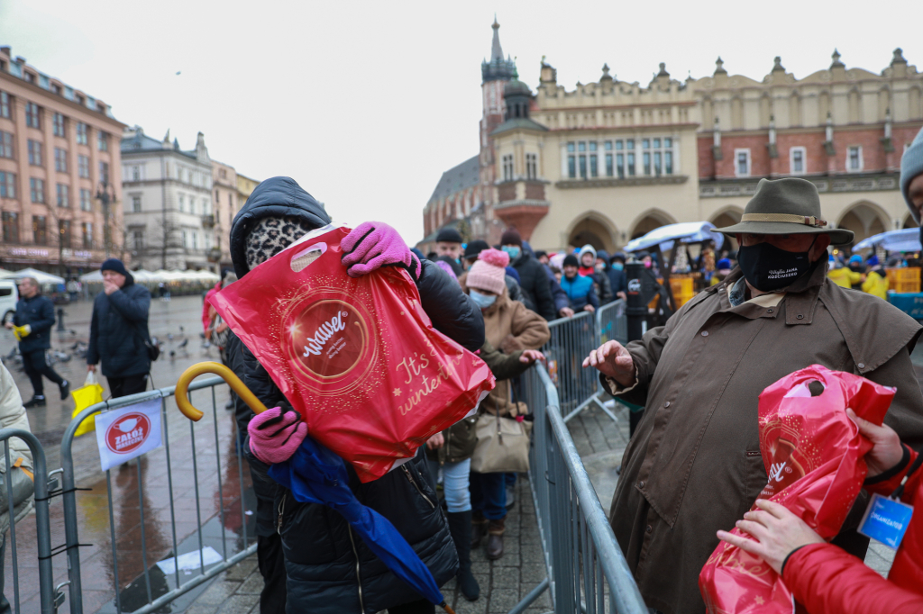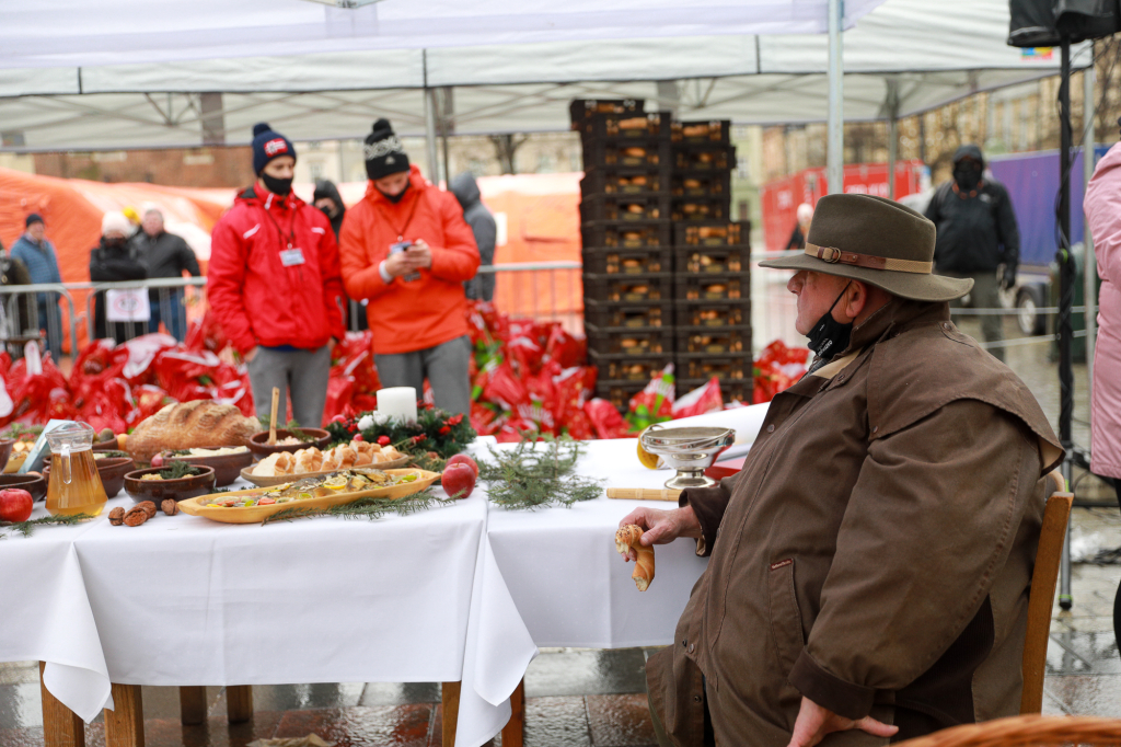 W ubiegłym roku z powodu covidowych obostrzeń organizatorzy przygotowali wigilię wyjazdową. Paczki ze świątecznym jedzeniem były dowożone do potrzebujących. W tym roku wigilia w formule stacjonarnej – z udziałem prezydenta miasta – rozpoczęła się o godz. 11.00 na płycie Rynku Głównego u wylotu ulicy Szewskiej.