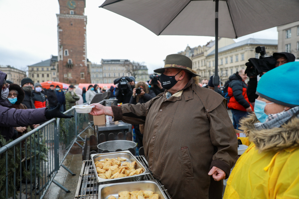 19 grudnia na Rynku w Krakowie odbyła się wigilia dla potrzebujących, która wpisała się już w kalendarz miejskich przedświątecznych wydarzeń. Od wielu lat tę wigilię przy udziale miasta organizuje Jan Kościuszko, krakowski restaurator i filantrop.