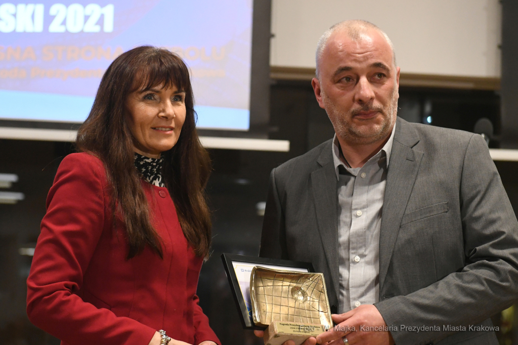 Nagrodę „Jasna strona futbolu” wręczyła Anna Korfel-Jasińska – zastępca prezydenta ds. edukacji, sportu i turystyki. Otrzymał ją Marek Dragosz – trener reprezentacji Polski w ampfutbolu, która we wrześniu ubiegłego roku sięgnęła w Krakowie po brązowe medale mistrzostw Europy.
