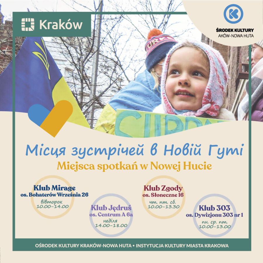 To właśnie przede wszystkim z myślą o nich, ich samopoczuciu, dziecięcych potrzebach stworzyliśmy miejsca, do których Was zapraszamy. Chcielibyśmy zaproponować Wam bezpłatne miejsca spotkań. Zapewnimy w nich zabawy i warsztaty dla Waszych dzieci, po to aby choć na chwilę mogły się oderwać od koszmaru. Będzie to również przestrzeń, gdzie będziecie się mogli spotkać z rodakami, wypić kawę, porozmawiać lub po prostu pomilczeć. W placówkach naszego Ośrodka Kultury czekać będą na Was wykwalifikowani pracownicy kultury oraz tłumacze – w większości wypadków Wasi Rodacy.