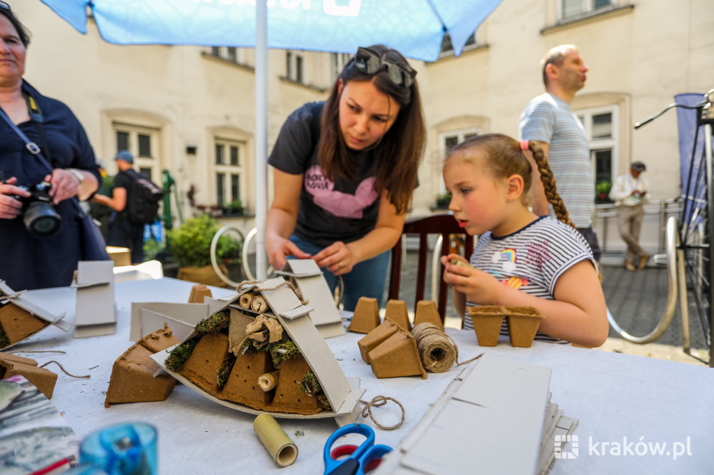 – Dowiedzieliśmy się, jak zbudować ogród deszczowy lub miniogródek w donicy, zajrzeliśmy do ula, poznaliśmy sekrety miejskich zapylaczy, zbudowaliśmy domki dla owadów, pokonaliśmy wodny tor przeszkód, a do obserwacji naukowych zjawisk użyliśmy mikroskopów. Chętni mogli próbować swoich sił w zawodach wytwarzania energii elektrycznej za pomocą rowerów lub ręcznego kołowrotka. Zgłębiliśmy też sztukę recyklingu – zarówno jak prawidłowo segregować odpady, ale również jak je ponownie wykorzystać, do stworzenia np. breloczków z dętek rowerowych czy portfeli z kapsułek po kawie. Nasi ekodoradcy odpowiedzieli na pytania dotyczące miejskich programów dotacyjnych – wymieniała Monika Chylaszek.