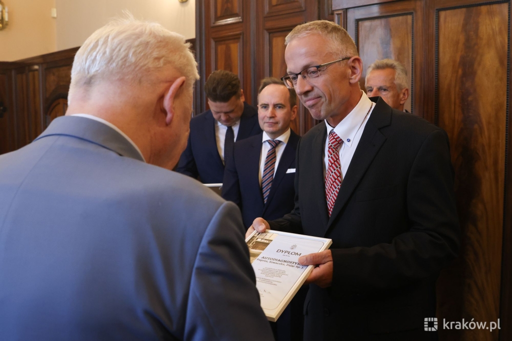 Prezydent Jacek Majchrowski wręczył wyróżnienia przedsiębiorcom prowadzącym w Krakowie najlepsze stacje kontroli pojazdów. Doceniono ich za rzetelność wykonywania badań technicznych pojazdów, wkład w poprawę jakości powietrza oraz bezpieczeństwa ruchu drogowego.