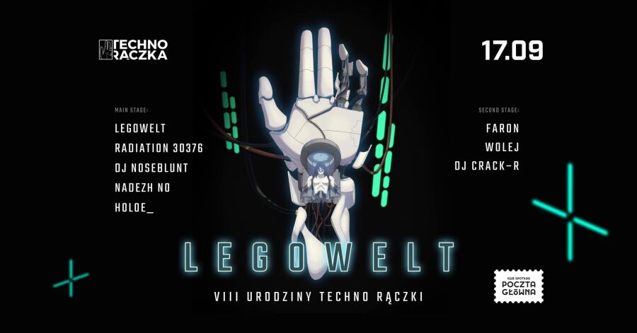 Poza Legoweltem w Klubie Spotkań Poczta Główna pojawią się także Olivia & Chino ze swoim autorskim live actem. To również ważne wydarzenie, ponieważ będzie to pierwszy występ tego duetu w Krakowie od ich pamiętnego debiutu w czasie Festiwalu Unsound w 2019 r. Na tej scenie zagrają także artyści z kolektywu We Lecim, czyli DJ Noseblunt oraz haloe_, a także Nadezh No. Druga scena to z kolei całkowicie inny klimat – dubstep, jungle, UKG. Tutaj zagrają Faron, Wolej oraz DJ Crack-R.