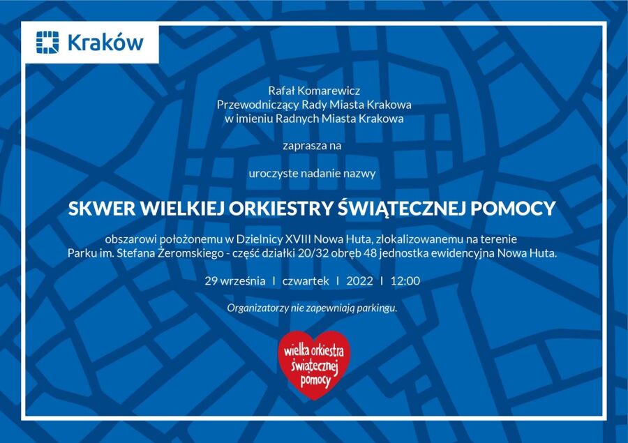 - Nie ma chyba osoby, która nie kojarzyłaby serduszek orkiestry na nowoczesnych sprzętach do ratowania życia i zdrowia. Dlatego w ten skromny, ale symboliczny sposób, pragniemy upamiętnić zasługi Wielkiej Orkiestry Świątecznej Pomocy i zapisać na stałe w przestrzeni Krakowa czyny i dokonania Orkiestry oraz naszą wdzięczność dla niej – dodaje Rafał Komarewicz.