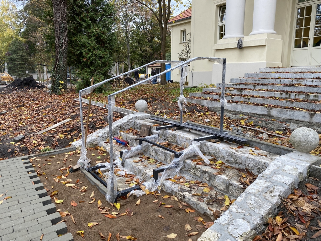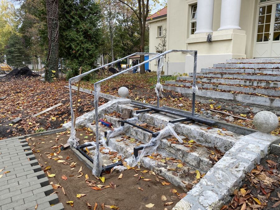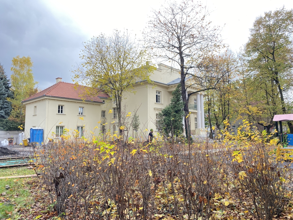W tym etapie modernizacji żłobka wykonawca zadania – firma SKO-BUD – zajmował się głównie zagospodarowaniem otoczenia zabytkowego budynku. W zakresie robót znalazła się renowacja i przebudowa ogrodzenia, bramy i furtki, a także renowacja zabytkowych schodów zewnętrznych od południowej strony budynku wraz z montażem nowych barierek. Modernizacja objęła nową aranżację ogrodu – maluchy będą miały do dyspozycji nowe place zabaw i alejki. W ramach zadania odnawiany jest trawnik, nasadzona zostanie roślinność oraz rabaty kwiatowe. Ponadto, przeprowadzany jest remont konserwatorski pompy wodnej, do którego zostanie doprowadzona instalacja wodna. Prace zakończą się ciągu najbliższych tygodni. Wartość kontraktu wynosi ok. 960 tys. zł.