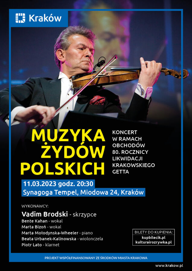 Przedsięwzięcie jest realizowane we współpracy Fundacji QKultura ze Związkiem Krakowian w Izraelu oraz dzięki współfinansowaniu ze środków miasta. Bilety do nabycia w serwisach: kupbilecik.pl oraz kulturairozrywka.pl.