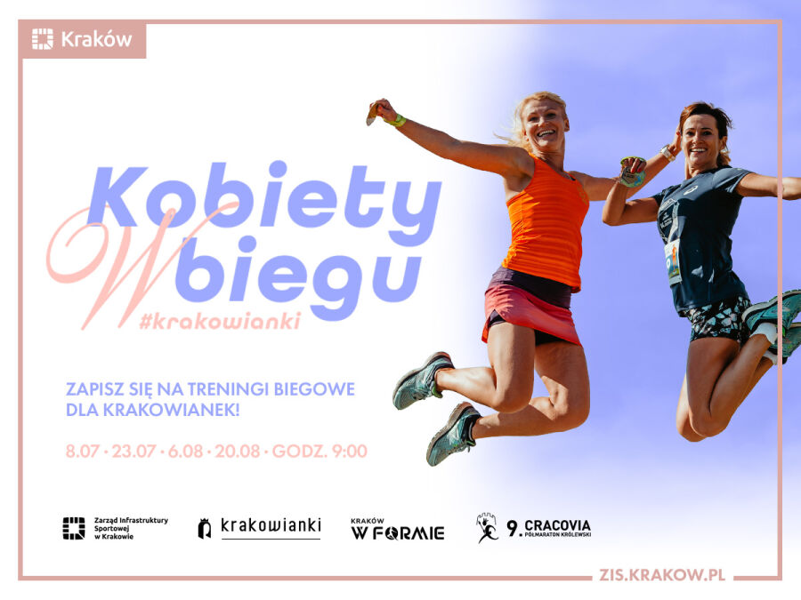 „Kobiety w biegu” to wspólna inicjatywa Urzędu Miasta Krakowa i Zarządu Infrastruktury Sportowej w Krakowie, podjęta w ramach projektu parasolowego #krakowianki, której celem jest zainspirowanie mieszkanek naszego miasta do rozpoczęcia przygody z bieganiem. Chcemy zaprosić w zielone plenery Krakowa wszystkie panie, które poszukują motywacji i inspiracji na tle sportowym, są głodne nowych doświadczeń i spotkań w pozytywnym, damskim gronie. Pora odczarować wyrażenie „kobiety w biegu” i nadać mu nowe, dosłowne znaczenie!