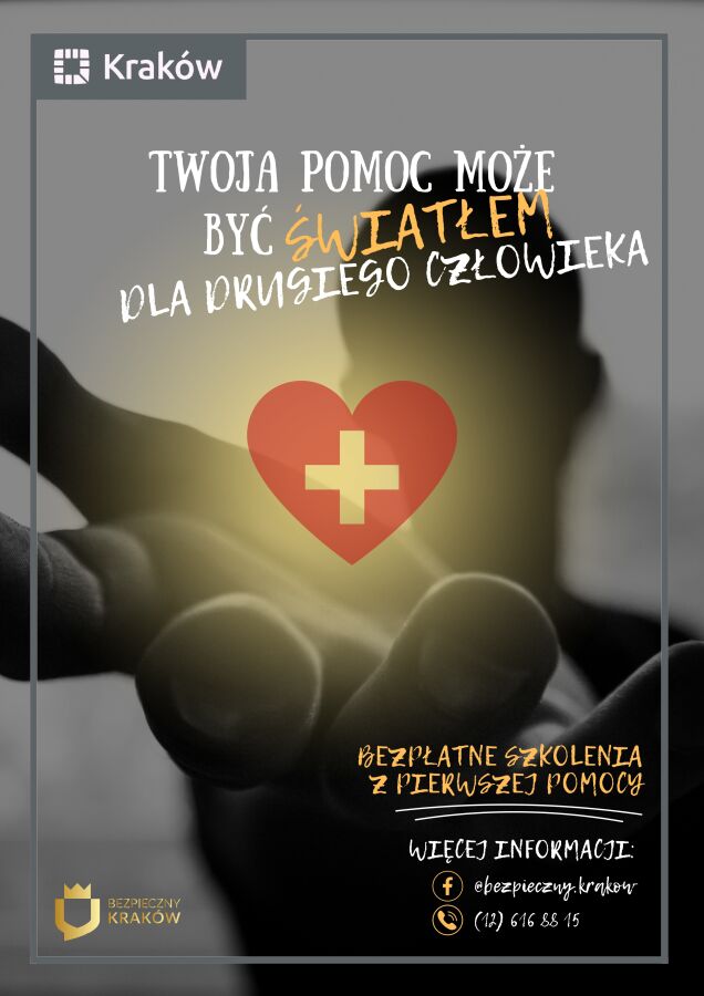 Przedstawiamy ogólnodostępne szkolenia z pierwszej pomocy BLS-AED wraz z wykładem edukacyjno-rehabilitacyjnym, organizowane w ramach programu „Bezpieczny Kraków”.