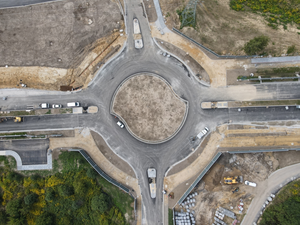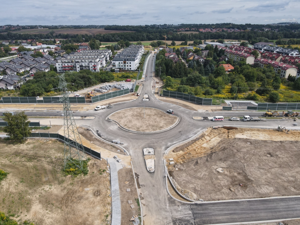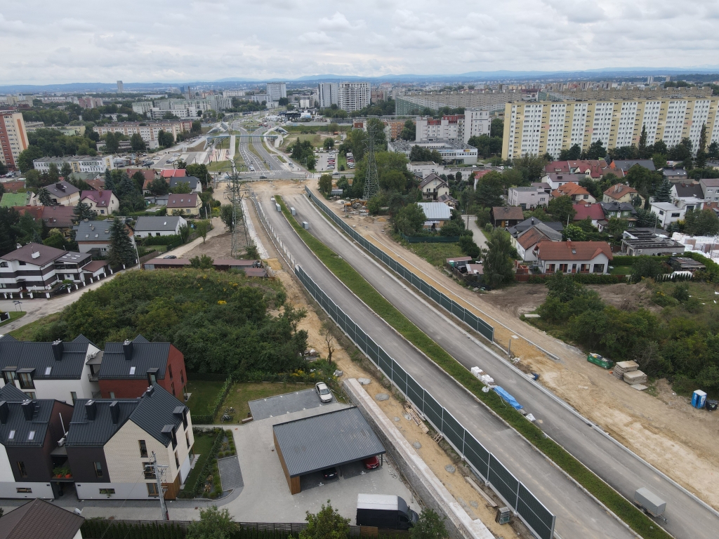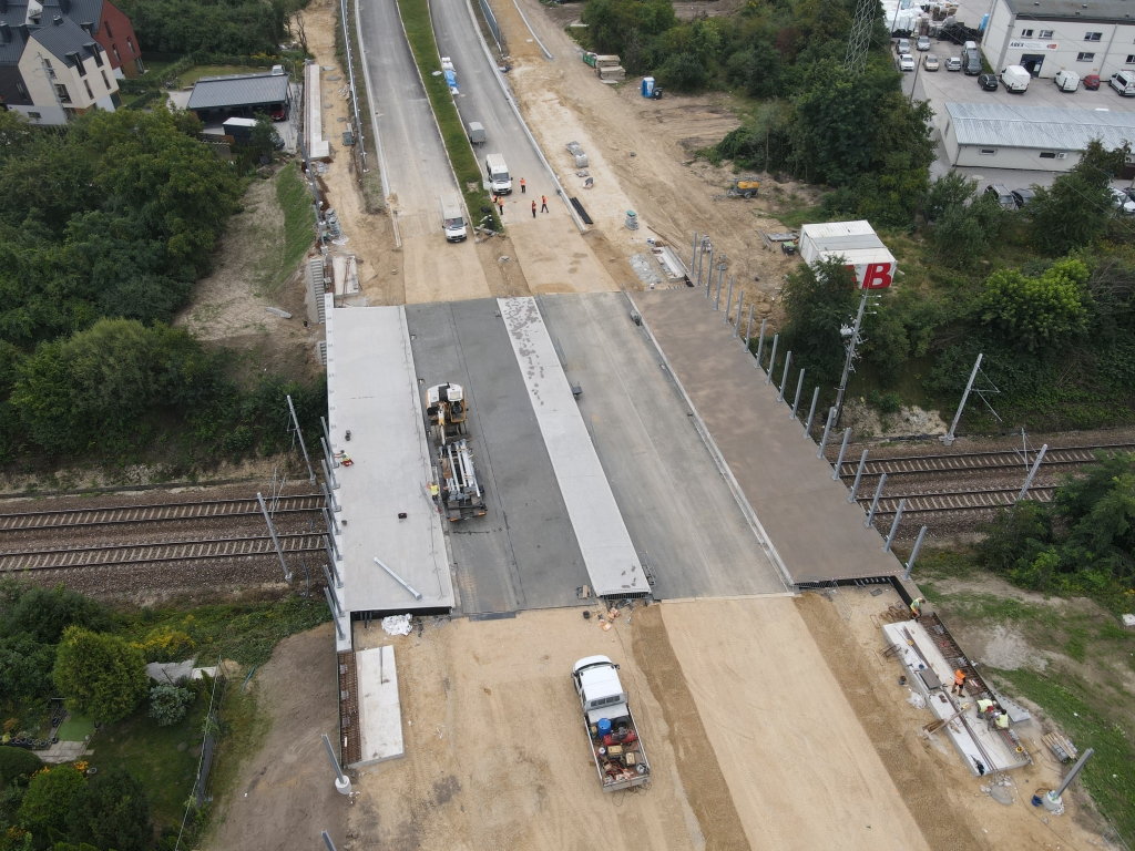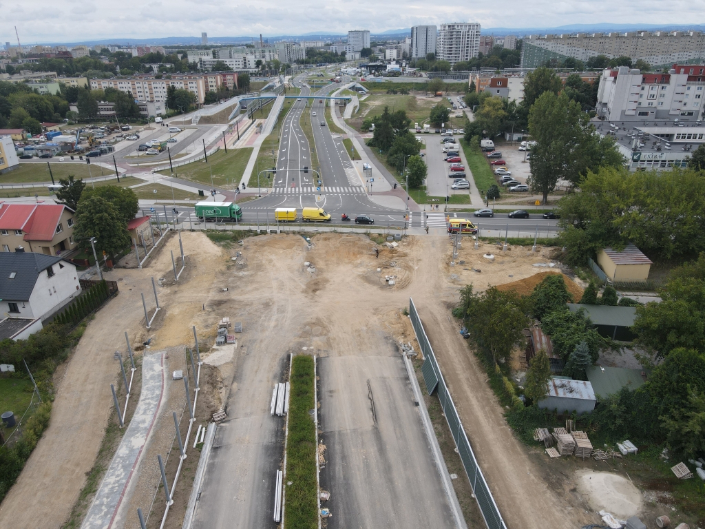 Obecnie układane są kolejne masy bitumiczne zarówno na jezdniach, jak i na wiadukcie nad linią kolejową. Widać już także rondo turbinowe, za pomocą którego będzie można zjechać z trasy w kierunku ul. Glogera. Warto dodać, że nowej trasie będzie towarzyszyć droga dla rowerów o długości blisko 2 km.