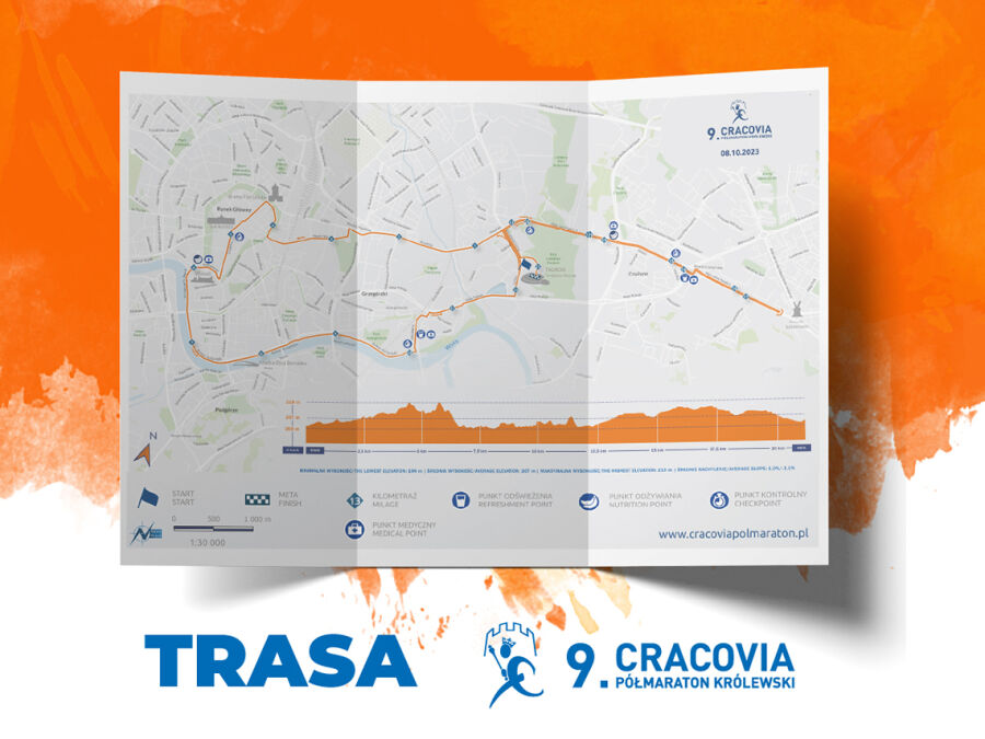 Pokonując dystans 21 km i 97,5 m, biegacze zobaczą najsłynniejsze krakowskie zabytki, takie jak: Wawel, Sukiennice, Barbakan, Brama Floriańska oraz historyczne budowle sakralne – jak kościoły Mariacki, św. Apostołów Piotra i Pawła, Na Skałce i inne. W zasięgu wzroku będą mieć także charakterystyczne dla naszego miasta obiekty – poza TAURON Areną Kraków, m.in. Kładkę im. Ojca L. Bernatka, Ogród Botaniczny, Centrum Kongresowe ICE Kraków, Muzeum Sztuki i Techniki Japońskiej „Manggha”. Spotkają też Smoka Wawelskiego! Trasa 9. Cracovia Półmaratonu Królewskiego posiada atest World Athletics (dawniej IAAF) oraz AIMS.