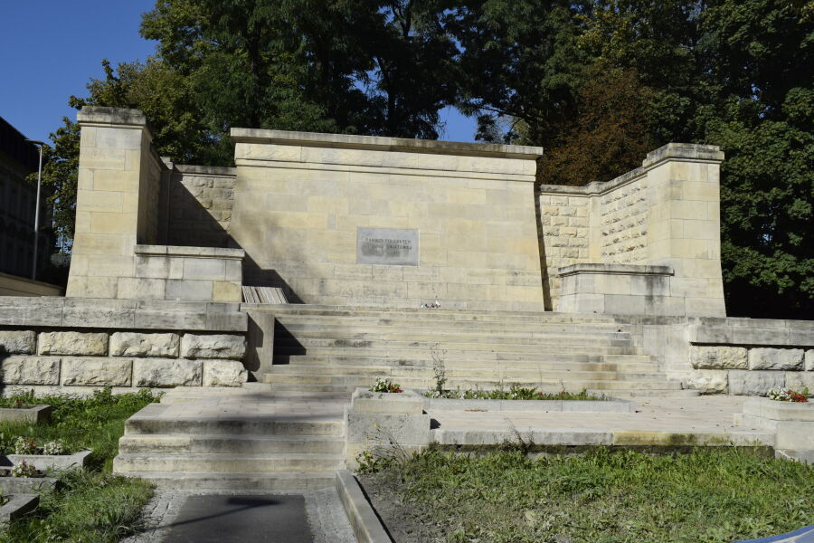 - prace konserwatorskie przy kamiennym obramowaniu mogiły zbiorowej na pasie 52 wraz z przylegającym kamiennym stopniem między mogiłą a mauzoleum.