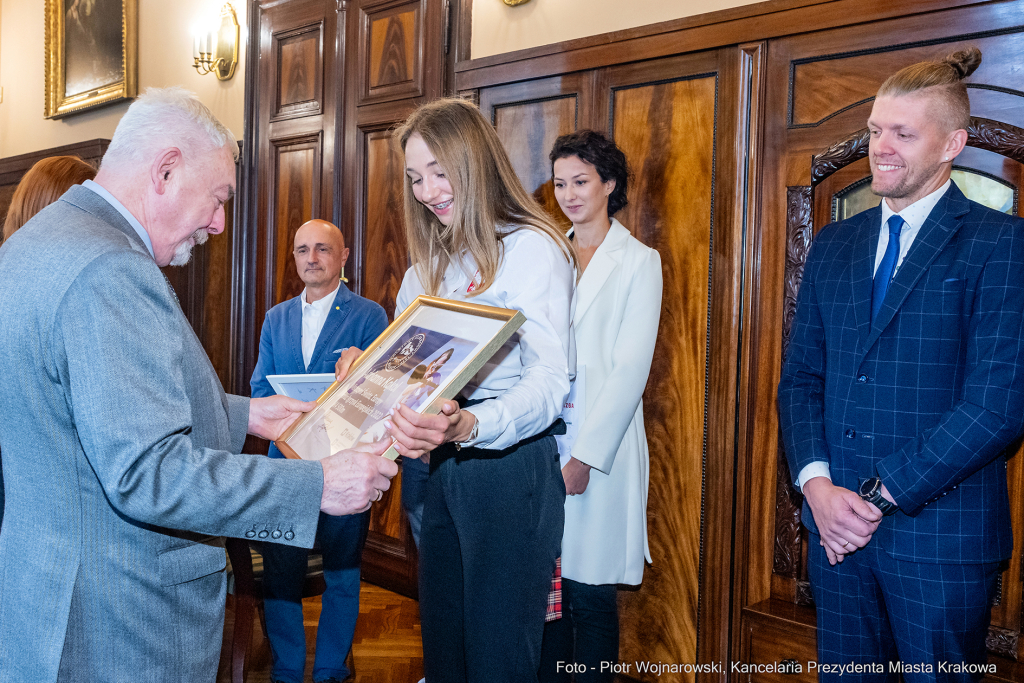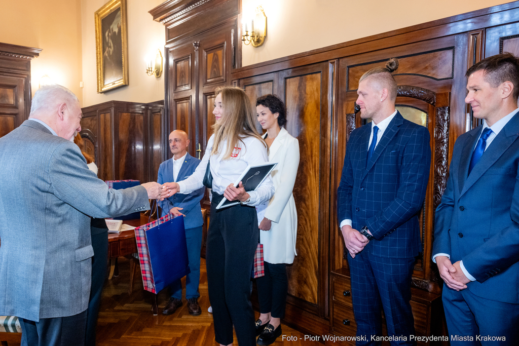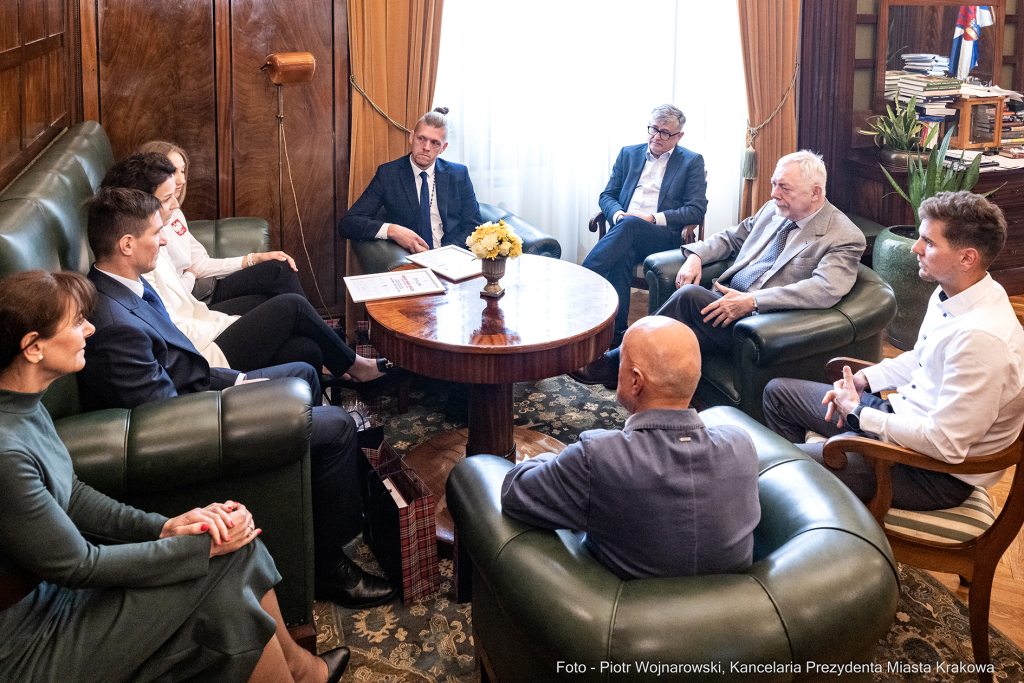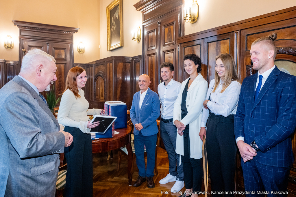 Medaliści igrzysk europejskich i mistrzostw świata oraz ich trenerzy byli gośćmi prezydenta Krakowa Jacka Majchrowskiego, który pogratulował im sportowych sukcesów.