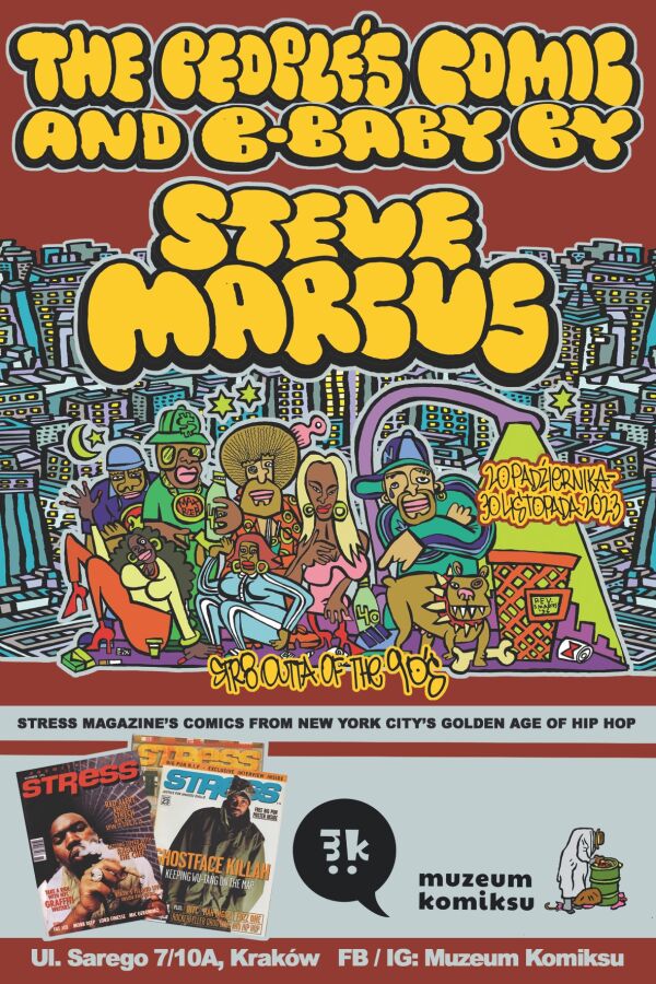 W roku obchodów 50-lecia kultury hip-hopu i 23 lata od wydania ostatniego numeru magazynu „Stress” krakowskie Muzeum Komiksu prezentuje po raz pierwszy w Polsce oryginalne plansze komiksowe Steve'a Marcusa z lat 90. XX wieku.