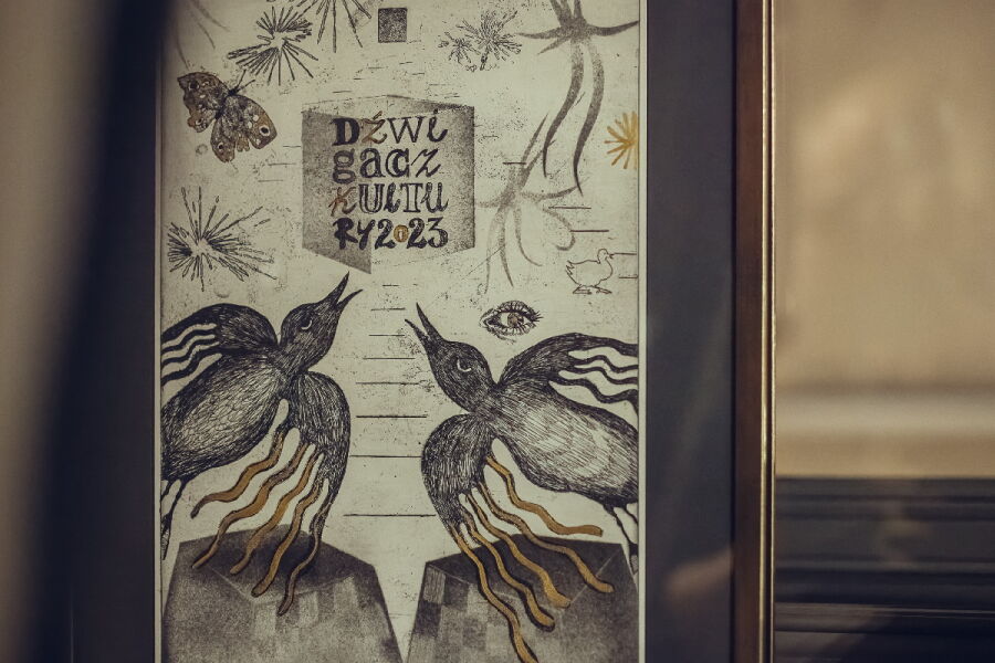 Dźwigacz Kultury to symboliczne podkreślenie tego, jak ważne dla rozwoju kultury jest wsparcie biznesu. Takie przesłanie stało się również inspiracją dla artystów tworzących grafiki – w tym roku Dźwigacza kultury zaprojektowała Justyna Rusinek.