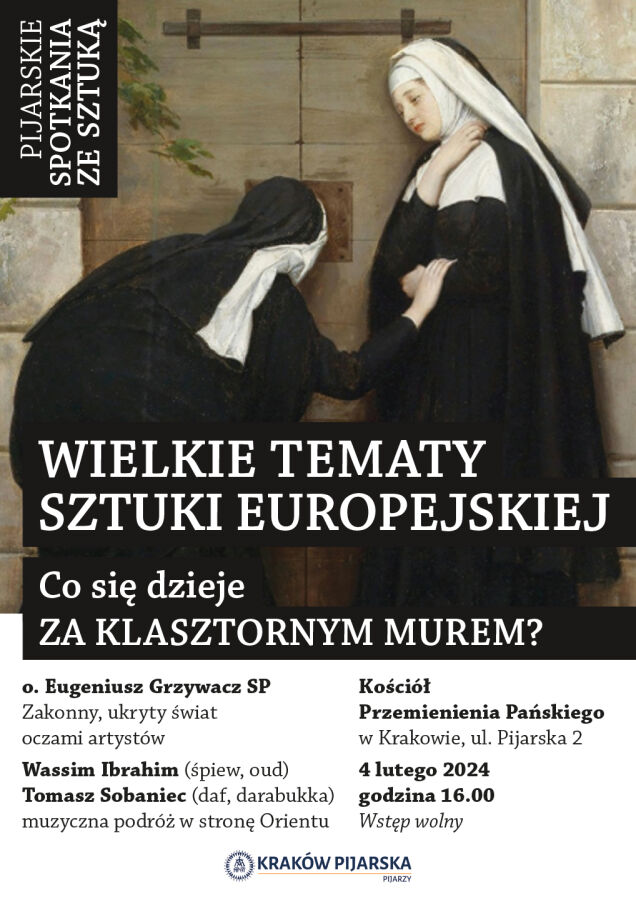 Kolejne z cyklu „Pijarskich spotkań ze sztuką” odbędzie się dziś, 4 lutego o godz. 16.00 w kościele Przemienienia Pańskiego przy ul. Pijarskiej 2. Wydarzenie organizowane pod hasłem „Za klasztornym murem” będzie koncentrować się na temacie życia zakonnego w malarstwie.