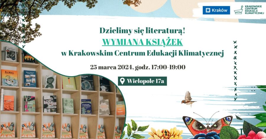 Chcesz odświeżyć swoją domową biblioteczkę? Twoje miejsce na książki już dawno się skończyło, ale wciąż szukasz nowych lektur? Jeśli tak, przyjdź na wiosenną wymianę książek w Krakowskim Centrum Edukacji Klimatycznej przy ul. Wielopole 17a i podziel się swoimi literackimi skarbami. Wydarzenie odbędzie się dziś, 25 marca, w godzinach od 17.00 do 19.00. Wstęp wolny.