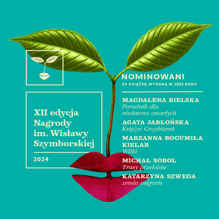 Magdalena Bielska, Agata Jabłońska, Marzanna Bogumiła Kielar, Michał Sobol, Katarzyna Szweda – to pięcioro autorów i autorek nominowanych do Nagrody im. Wisławy Szymborskiej za książki poetyckie wydane w 2023 roku. Nagroda za najlepsze tłumaczenie tomu poetyckiego na język polski wydanego w latach 2022–2023 trafi w ręce Macieja Topolskiego za przekład „Autobiografii czerwonego. Powieści wierszem” Anne Carson (Wydawnictwo Ossolineum, 2022).