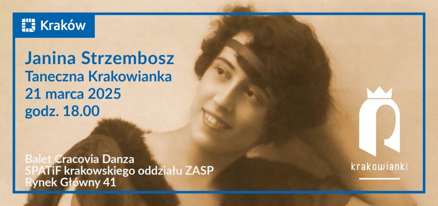 Dziś, 21 marca, o godzinie 18.00 w Klubie Aktora w Rynku Głównym 41 odbędzie się spotkanie w ramach Miesiąca Krakowianek – „Janina Strzembosz – taneczna Krakowianka”.
