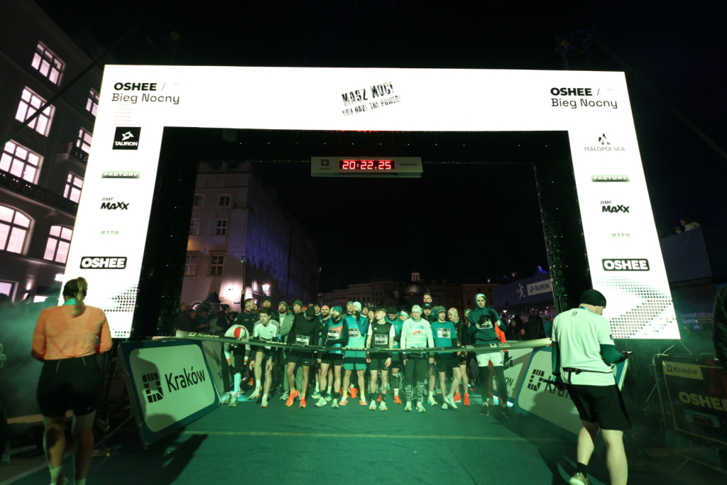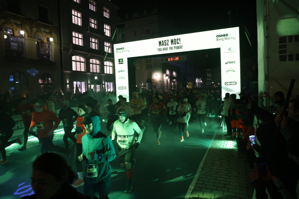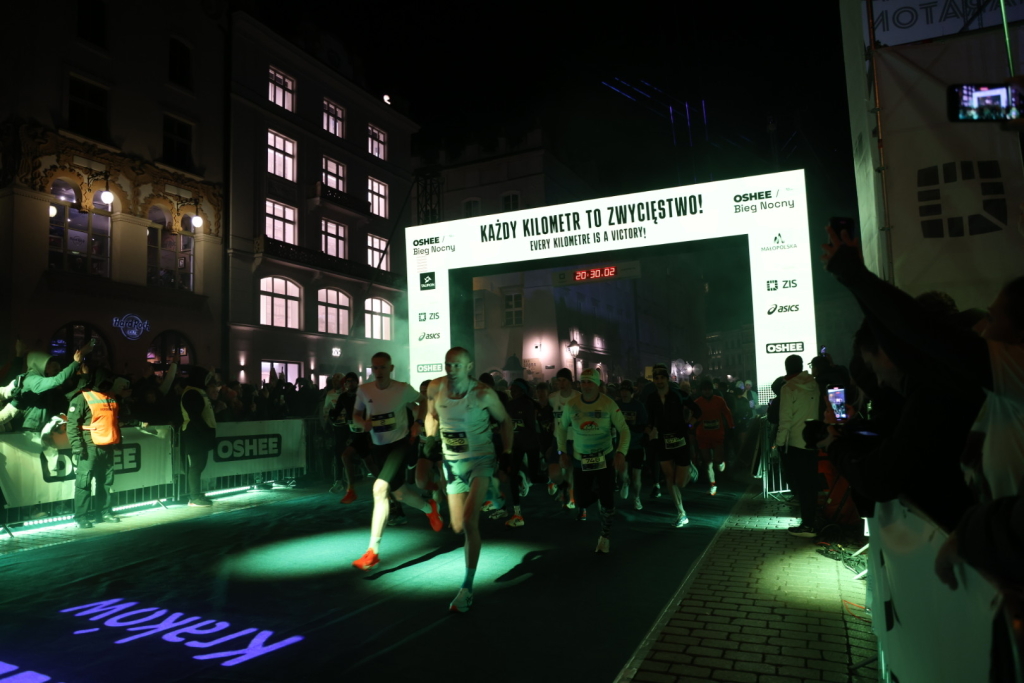 Uczestnicy OSHEE Biegu Nocnego na 10 km wyruszyli na trasę o godz. 20.30 w wieczór poprzedzający Cracovia Maraton. Po raz szósty z rzędu wystartowali i zafiniszowali tam, gdzie maratończycy – na Rynku Głównym. Widok oświetlonych zabytków i uliczek Starego Miasta z perspektywy biegacza to niepowtarzalne doznanie, o czym zgodnie zaświadczają zawodnicy mający za sobą udział w tej imprezie. W tym roku uczestników dziesiątej, jubileuszowej odsłony wydarzenia czekała też wyjątkowa atrakcja w postaci przebiegnięcia przez dziedziniec Zamku Królewskiego na Wawelu.