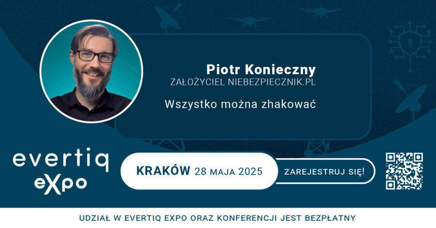 28 maja Kraków stanie się centrum rozmów o cyberbezpieczeństwie. Na Evertiq Expo, największym wydarzeniu branży elektronicznej w południowej Polsce, pojawi się Piotr Konieczny – ekspert ds. bezpieczeństwa IT i założyciel serwisu Niebezpiecznik.pl.